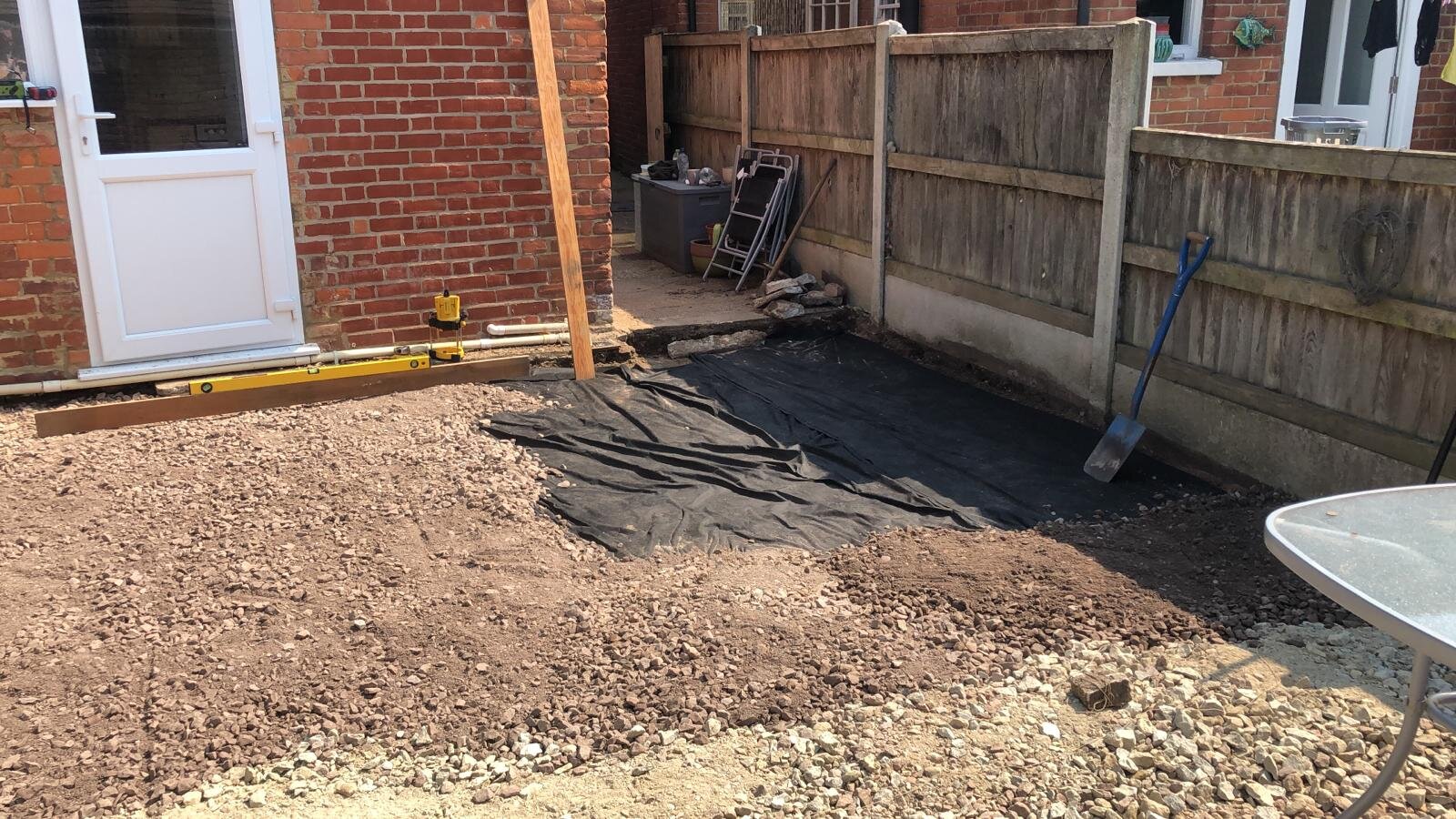 Complete garden re design, replacing an old patio with a larger paved area, new borders and renewed soil ready for planting.